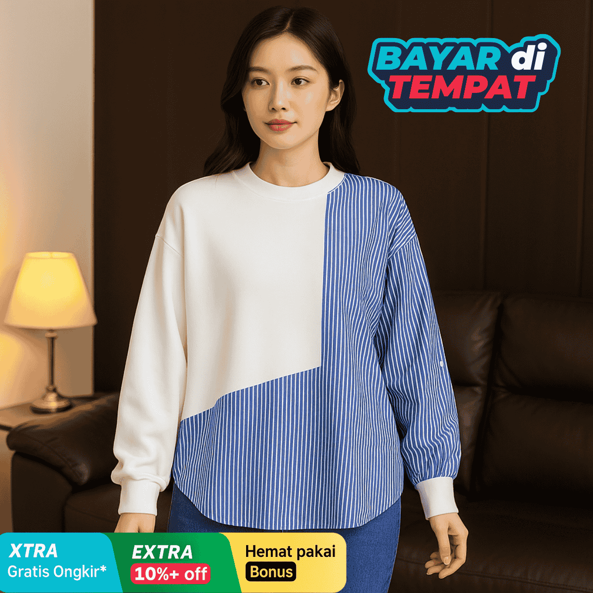 Tampil trendi dan nyaman dengan Maulida Blouse Skuba Mix Salur yang memadukan desain unik half-block warna putih dan motif salur biru. Terbuat dari bahan skuba premium yang lentur, tebal, dan tidak mudah kusut, blouse ini memiliki potongan oversize yang cocok untuk semua bentuk tubuh. Tersedia ukuran lengkap S–5L, cocok untuk gaya kasual hingga semi-formal.